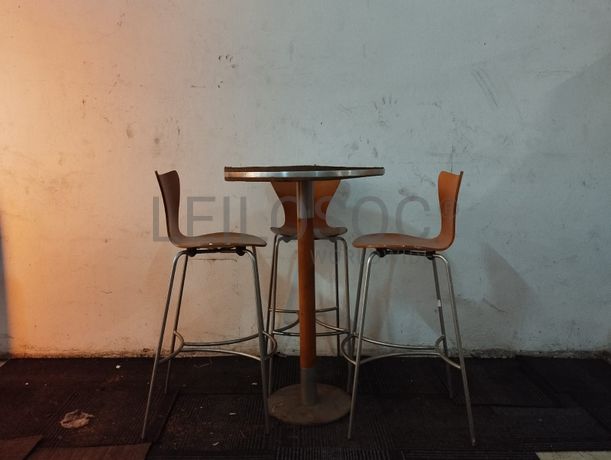 Uma mesa redonda e cinco cadeiras