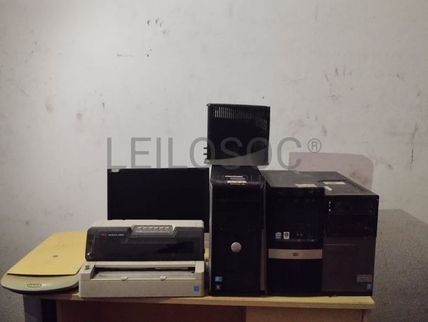 Um PC'S marca HP e quatro Caixas de PC'S marca Dell, uma impressora matricial marca OKI microcline 6300FB, scanner marca HP, três monitores marca HP e Dell, modern de internet a cabo de telefonia ARRIS TM602G