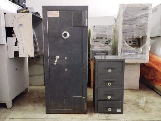 Um cofre de segurança e armário de segurança com quatro gavetas