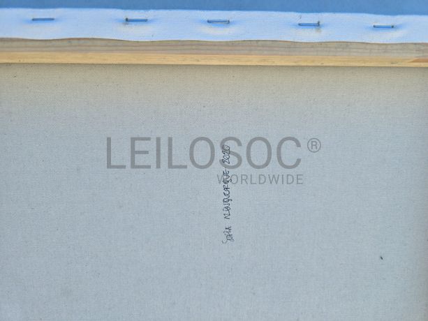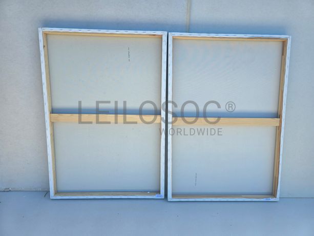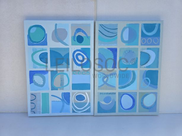 Conjunto de duas telas pintadas à mão, com assinatura de autora, estrutura de madeira, de 100x70 centímetros.