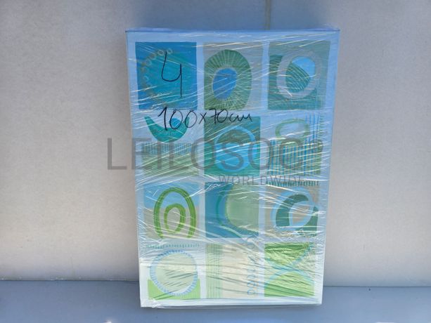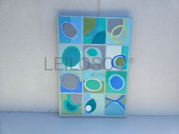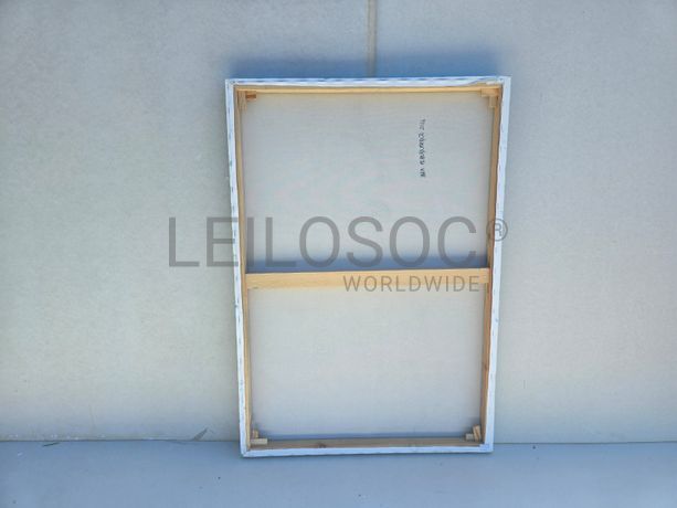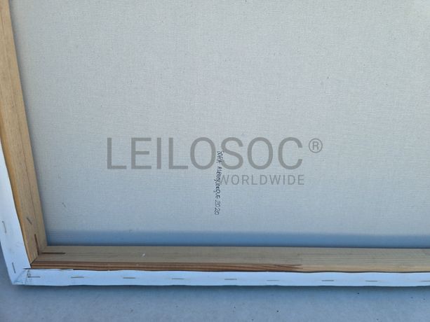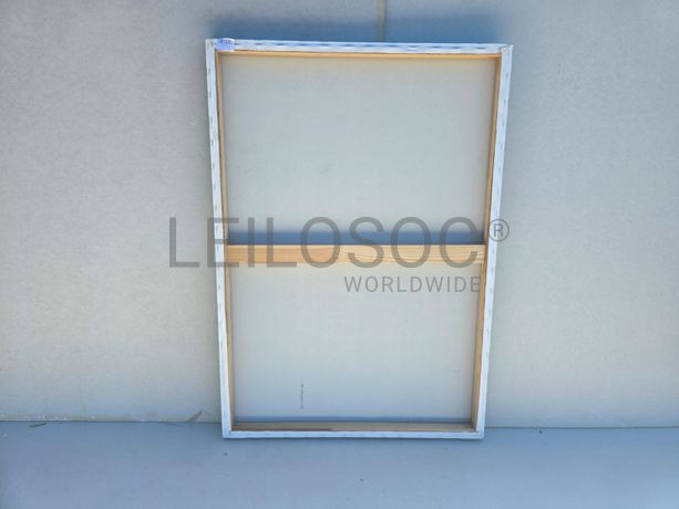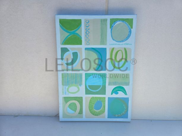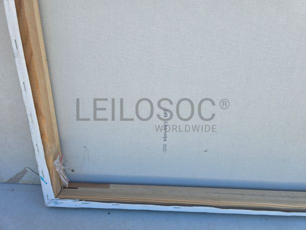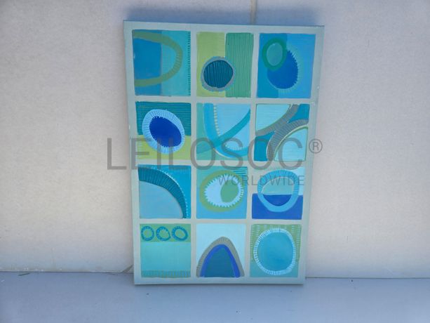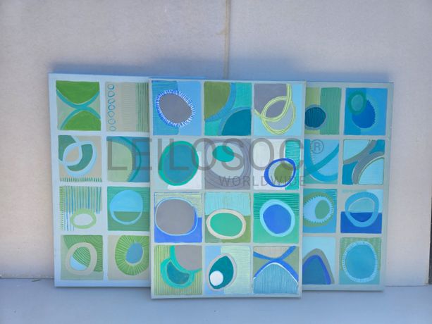 Conjunto de três telas pintadas à mão, com assinatura de autora, estrutura de madeira, de 100x70 centímetros.