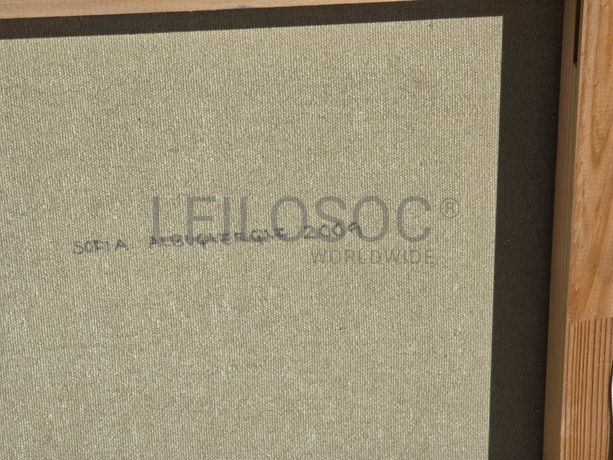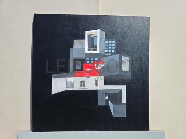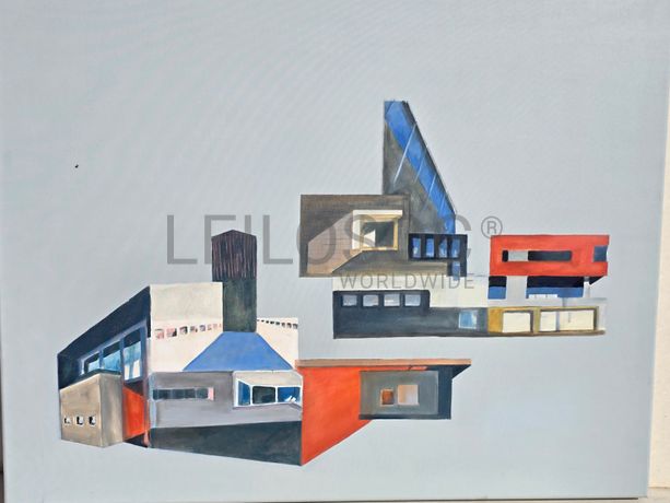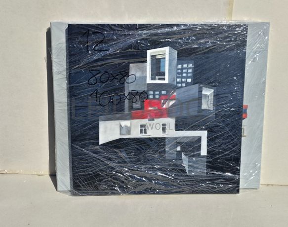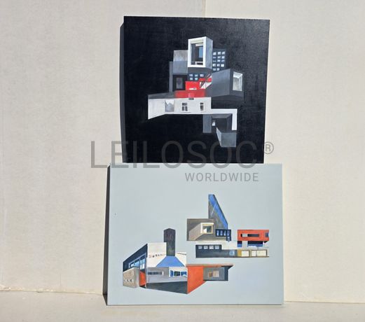 Conjunto de duas telas pintadas à mão, com assinatura de autora, estrutura de madeira, de 80x80 e 100x80 centímetros.