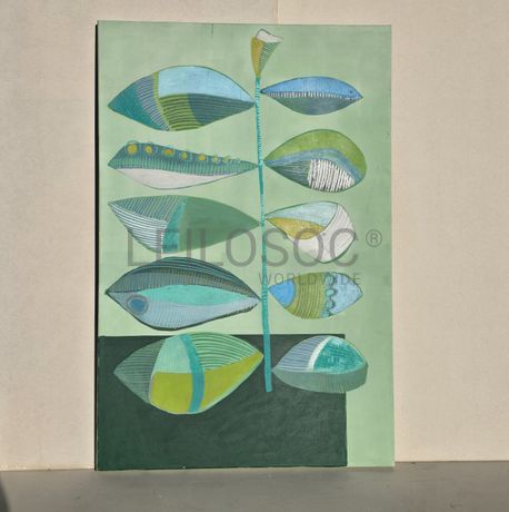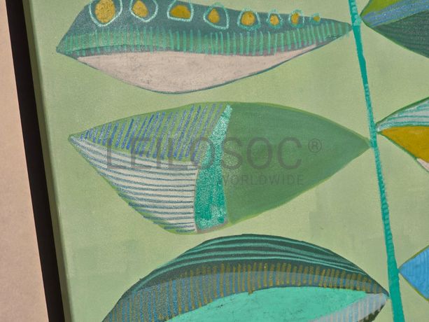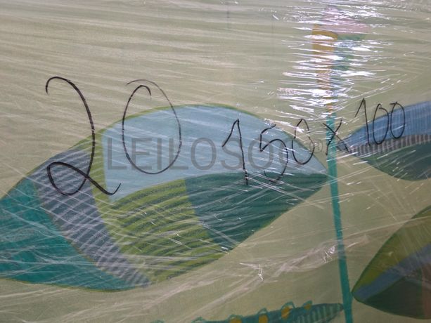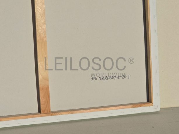 Tela pintada à mão, com assinatura de autora, estrutura de madeira, de 150x100 centímetros.