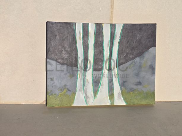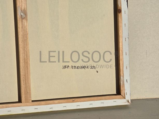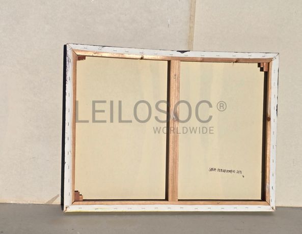 Tela pintada à mão, com assinatura de autora, estrutura de madeira, de 80x60 centímetros.