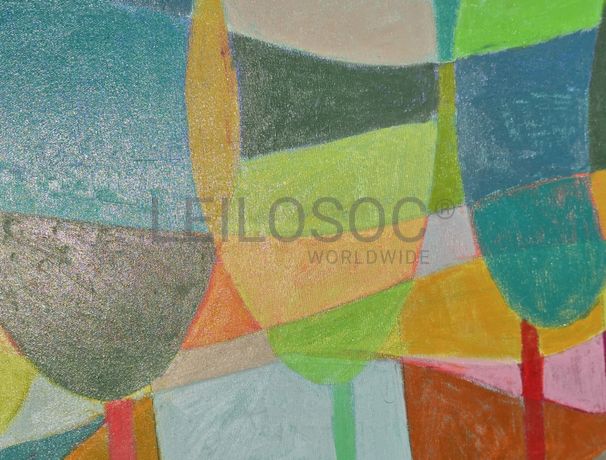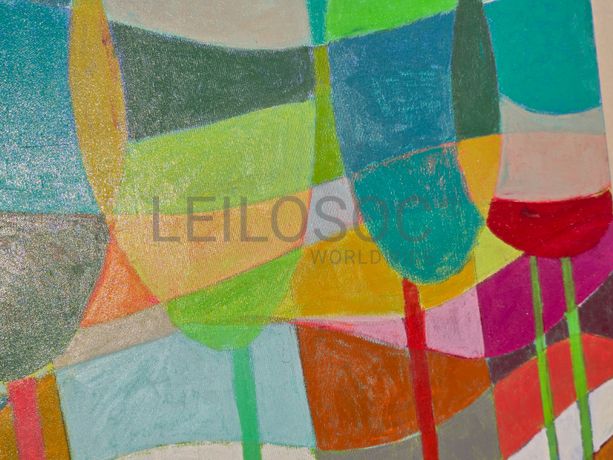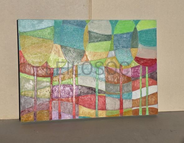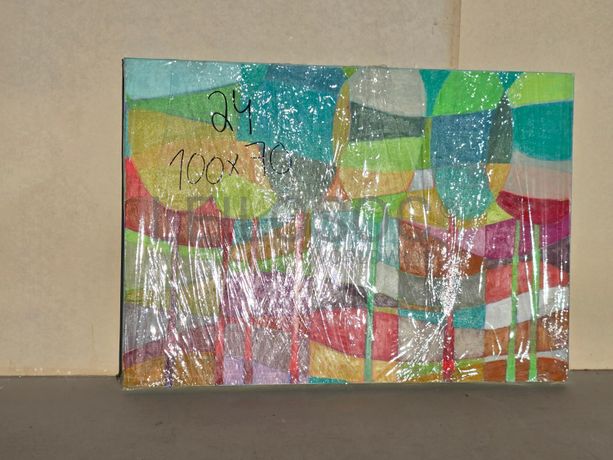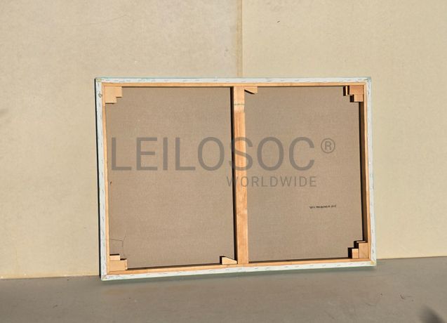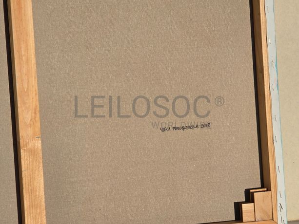 Telapintada à mão, com assinatura de autora, estrutura de madeira, de 100x70 centímetros.