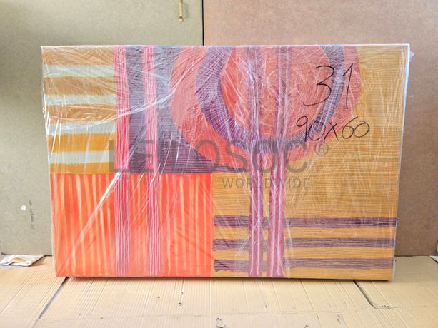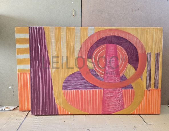 Conjunto de duas telas pintadas à mão, com assinatura de autora, estrutura de madeira, de 90x60 centímetros.