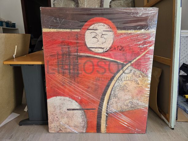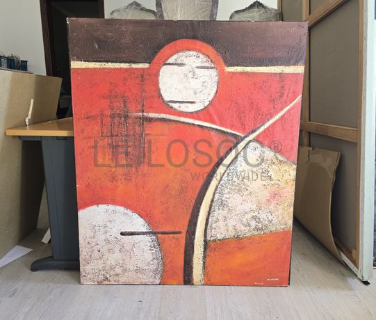 Tela pintada à mão, com assinatura de autor, estrutura de madeira, de 120x100 centímetros.