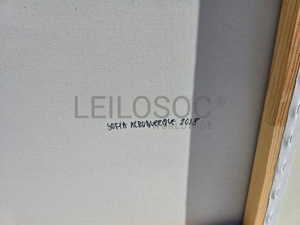 Conjunto de duas telas pintadas à mão, com assinatura de autora, estrutura de madeira, de 120x70 e 120x60 centímetros.