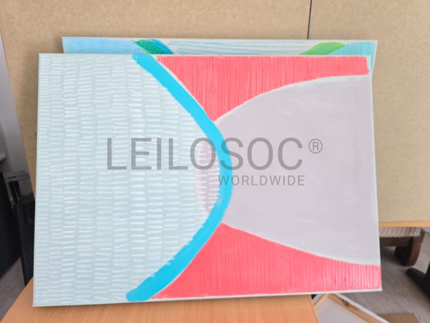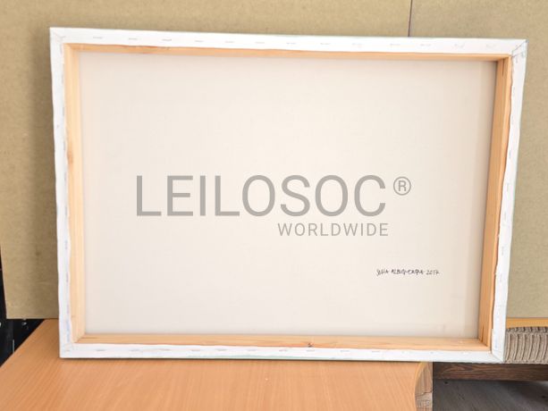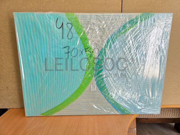Conjunto de duas telas pintadas à mão, com assinatura de autora, estrutura de madeira, de 70x50 centímetros.