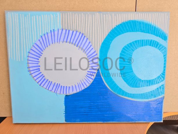 Conjunto de duas telas pintadas à mão, com assinatura de autora, estrutura de madeira, de 70x50 centímetros.