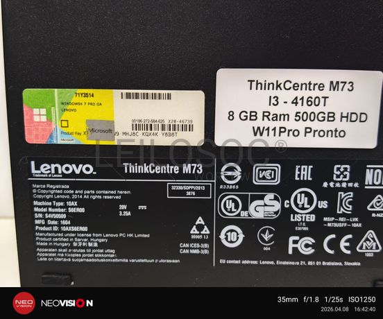 Conjunto de 10 computadores, Lenovo ThinkCentre M73, com processador Intel i3-4160T, memória RAM de 8GB, disco de armazenamento de 500GB, com Windows 11 Pro.