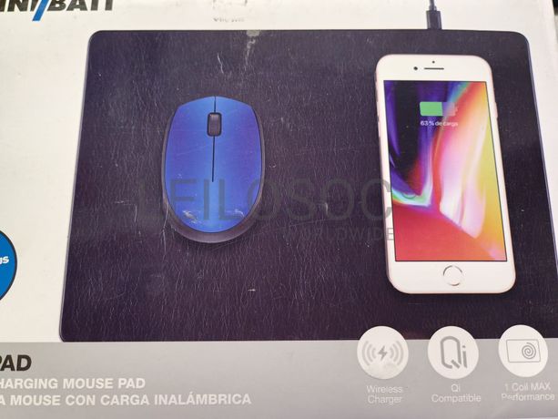 Tapete de rato da marca MiniBatt, com a capacidade de carregar o telemóvel sem fios, inalâmbrico, de cor preta.