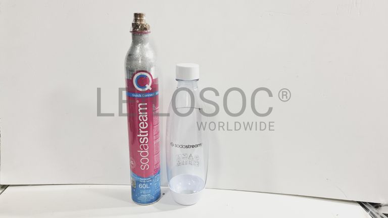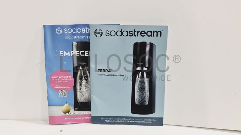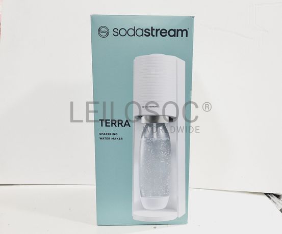 Máquina Sodastream, modelo Terra, para fazer água com gás, branca, com cilindro de CO2 e garrafa reutilizável.