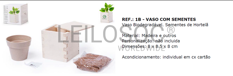 1. Vaso Biodegradável. Sementes de Hortelã.
