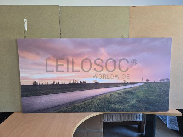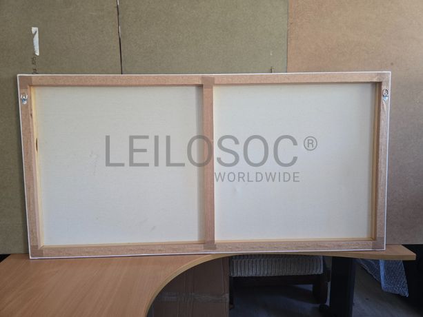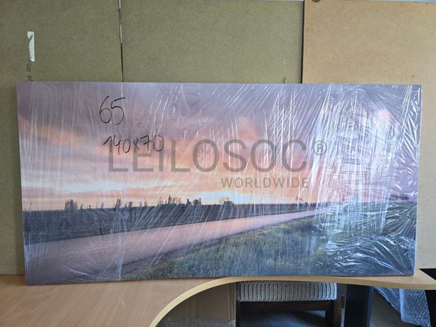 Tela de motivo natureza, de 140cm de comprimento e de 70cm de altura, com estrutura em madeira.