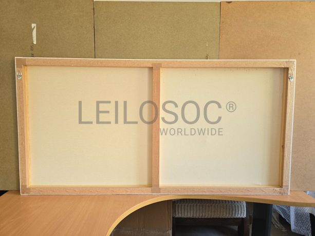 Tela de motivo natureza, de 140cm de comprimento e de 70cm de altura, com estrutura em madeira.