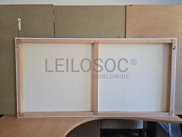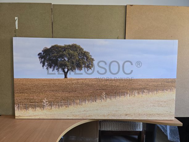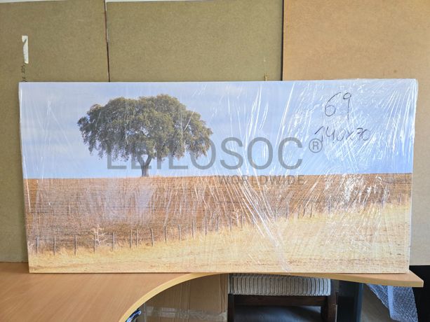 Tela de motivo natureza, de 140cm de comprimento e de 70cm de altura, com estrutura em madeira.