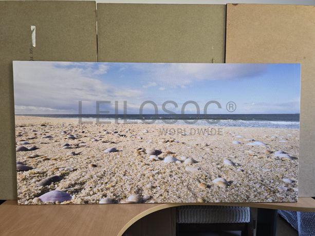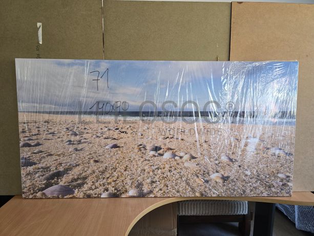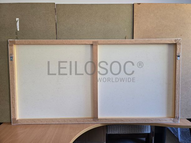 Tela de motivo natureza, de 140cm de comprimento e de 70cm de altura, com estrutura em madeira.