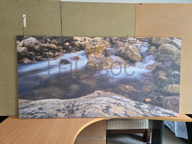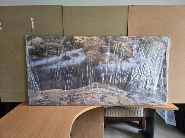 Tela de motivo regional, de 140cm de comprimento e de 70cm de altura, com estrutura em madeira.