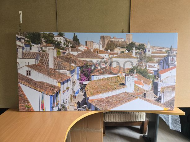 Tela de motivo regional, de 140cm de comprimento e de 70cm de altura, com estrutura em madeira.