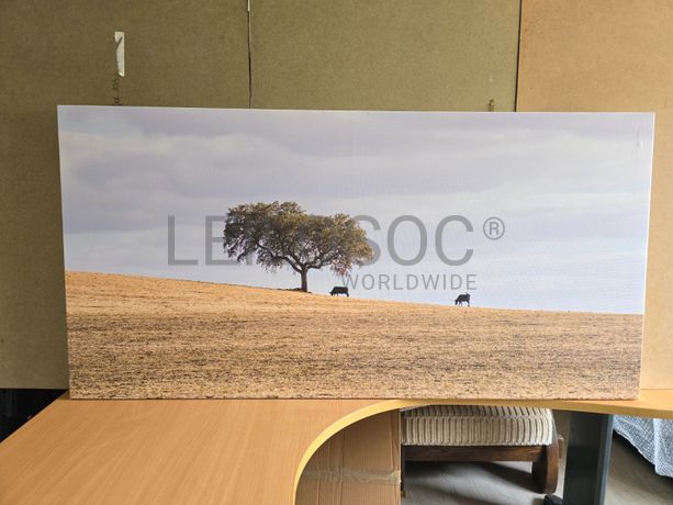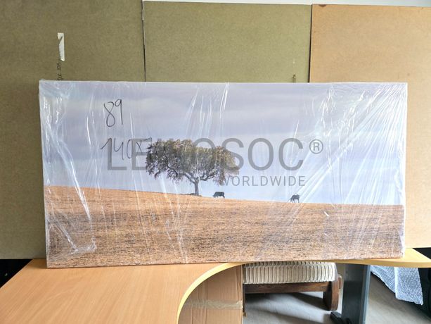 Tela de motivo regional, de 140cm de comprimento e de 70cm de altura, com estrutura em madeira.