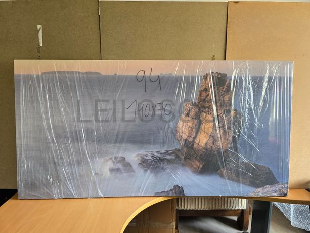 Tela de motivo regional, de 140cm de comprimento e de 70cm de altura, com estrutura em madeira.