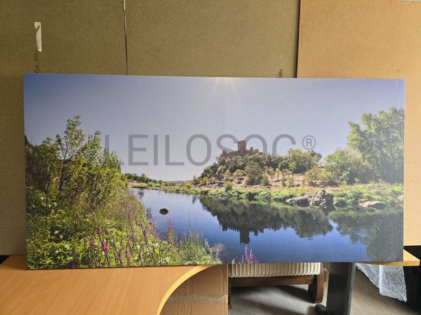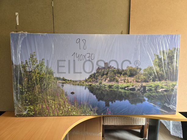 Tela de motivo regional, de 140cm de comprimento e de 70cm de altura, com estrutura em madeira.