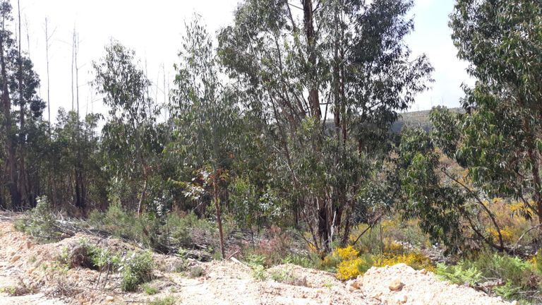 - Terreno com eucaliptos · Tem construído um pequeno casebre · Área Total de 2.830 m² · Acesso A23, N244 e Estradão do Caratão · Sito em Lugar de Oliveiras do Moinhoo · GPS: 39.585833, -7.965