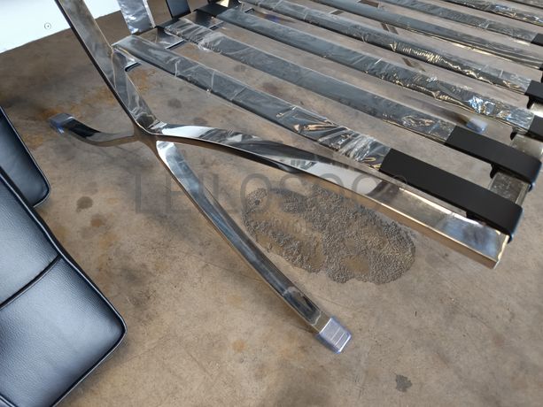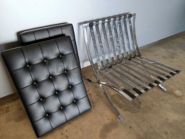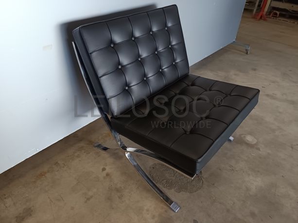 Cadeirão com estrutura metálica e almofadas em napa cor preto